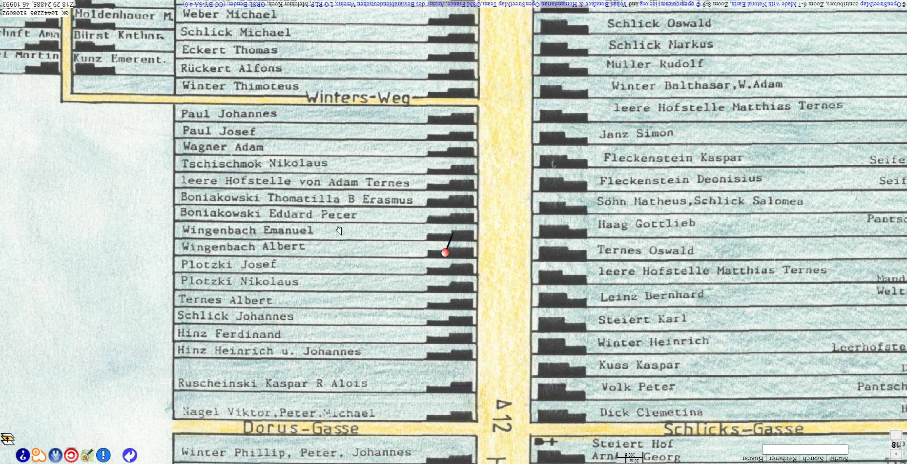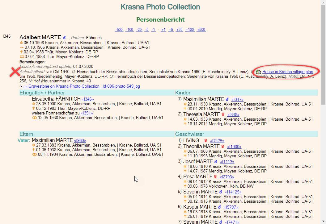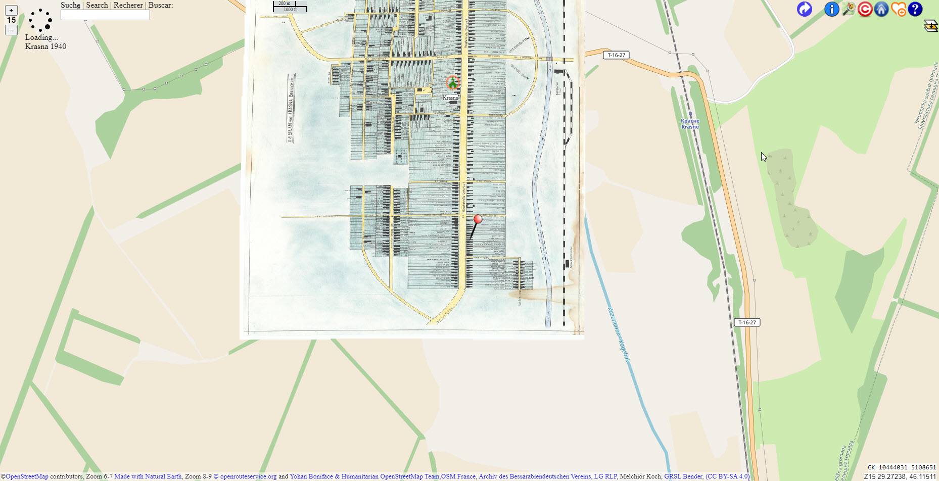 Auf dem Ortsplan von Krasna sind über 600 Hauseigentümer per Datum Oktober 1940 verzeichnet. Diese Personen haben im Personenbericht einen Hyperlink zum Ortsplan von Krasna auf Historic.Place.